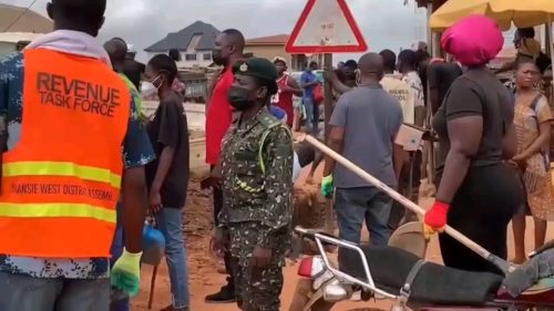 The Amansie West District Assembly in the Ashanti Region, in collaboration with traditional leaders (Nananom), the Ghana Police Service, the Ghana Immigration Service, the National Disaster Management Organisation (NADMO), and hundreds of enthusiastic residents, has successfully observed the National Sanitation Day with a massive community clean-up exercise at Manso Antoakrom.