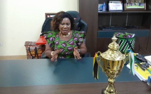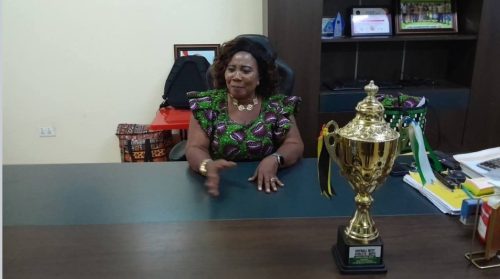 The District Chief Executive (DCE) for Atwima Kwanwoma, Hon Grace Agyemang Asamoah, has received a trophy from St. Hubert Seminary Senior High School in recognition of the exceptional performance of one of its students in the recently concluded Senior High School Athletics Competition.