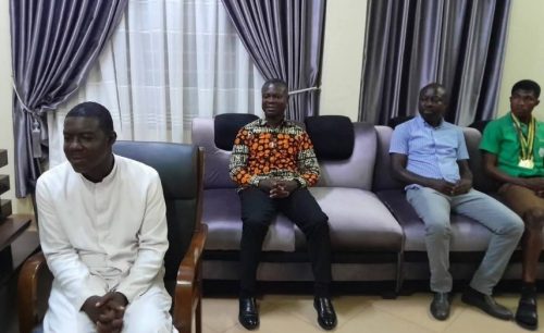 The presentation was made during a courtesy call on the DCE by a delegation from the school, led by the Rector, Rev. Fr. Henry Mensah, and supported by the Headmaster, Eric Kyei, two sports officers, and the athlete at the centre of the honour, Blessed Owusu.