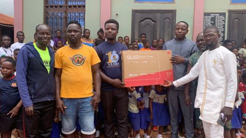 In a significant move to promote quality education and improve teaching and learning outcomes at the foundational level, the Assembly Member for the Takorasi Electoral Area in the Amansie South district of the Ashanti Region,Hon. Dominic Bonsu, has donated five (5) brand-new 32-inch LED Smart Television sets to kindergarten schools within his jurisdiction.