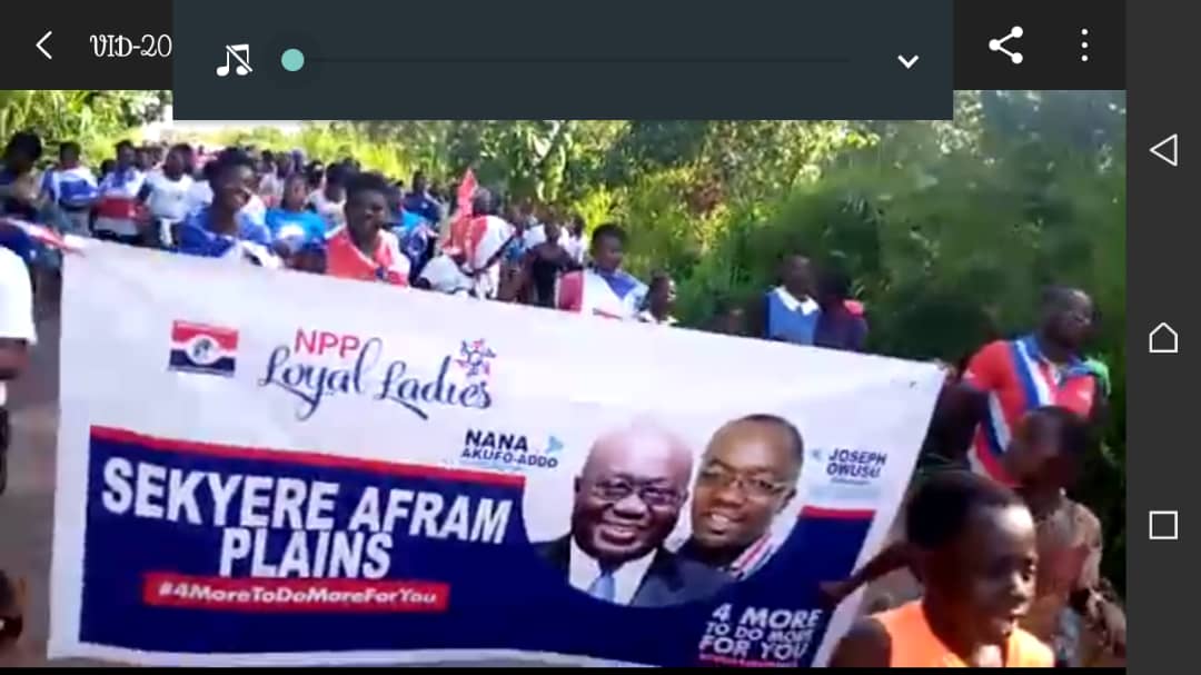The parliamentary candidate for Sekyere Afram plains constituency of Ashanti region, in the ticket of the new patriotic party, Mr Joseph Owusu aka Odenkyem received massive support and enthusiasm from the citizens in the constituency who joined him filed his nomination forms to the electoral commission’s office at Drobonso the constituency capital.